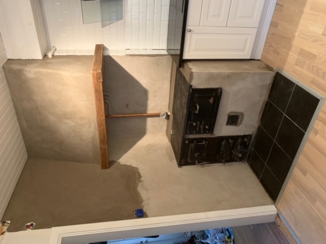 Efter renovering behöver kakelugnen torka i ungefär 6 månader, efter det är den redo att börja eldas i igen!
